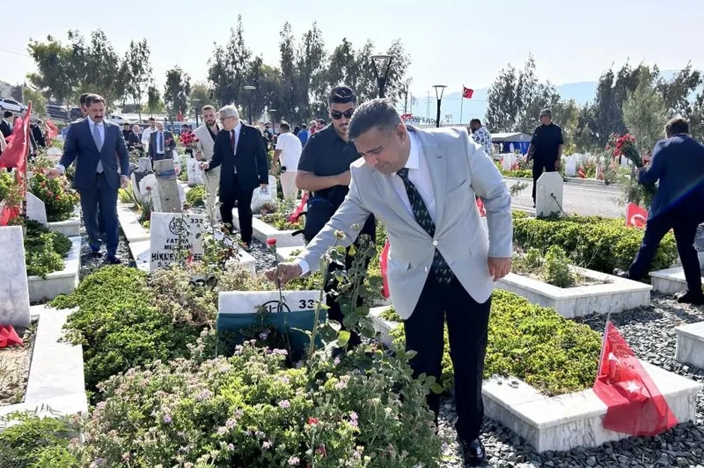 Kahramanmaraş merkezli depremlerde Hatay’da 25 bine yakın insan vefat etmişti. Depremde hayatını kaybeden vatandaşlar için Antakya ilçesi Narlıca Mahallesi’nde deprem mezarlığı kurulmuştu. Her bayram öncesi olduğu gibi bu bayramda arefe gününde de, Hatay Valisi Sayın Mustafa Masatlı, Hatay Büyükşehir Belediyesi Başkanı Mehmet Öntürk ve protokol üyeleri tarafından depremde hayatını kaybeden vatandaşların mezarlarına karanfil bıraktı, dualar edildi. "KİMSE YALNIZ DEĞİL"