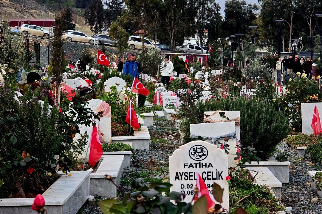 Öte yandan, deprem mezarlığına gelen aileler de kabirlere karanfil bırakarak dua etti.