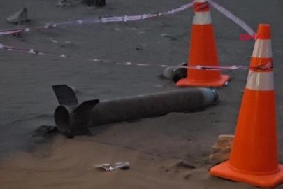 Dalgaların getirdiği düşünülen roket, ekipler tarafından güvenlik altına alındı.