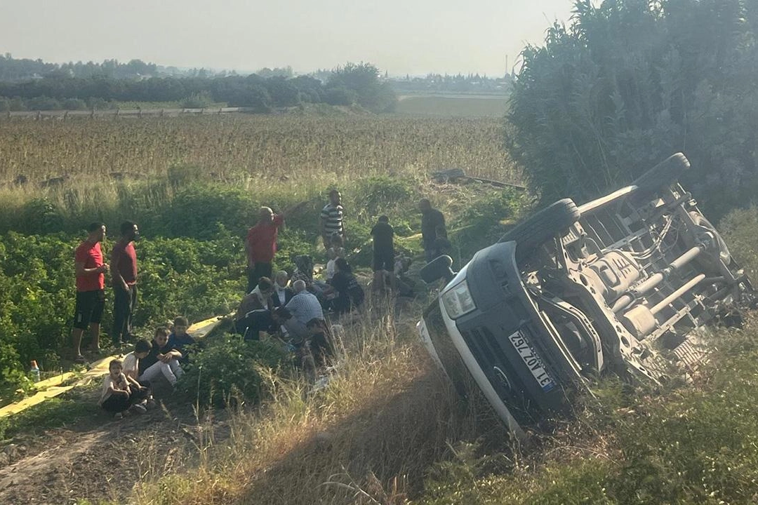 Sürücüsünün henüz ismi öğrenilemeyen bir özel rehabilitasyon merkezine ait servis minibüsü, Bozhöyük Mahallesi'nde yol kenarındaki tarlaya devrildi.