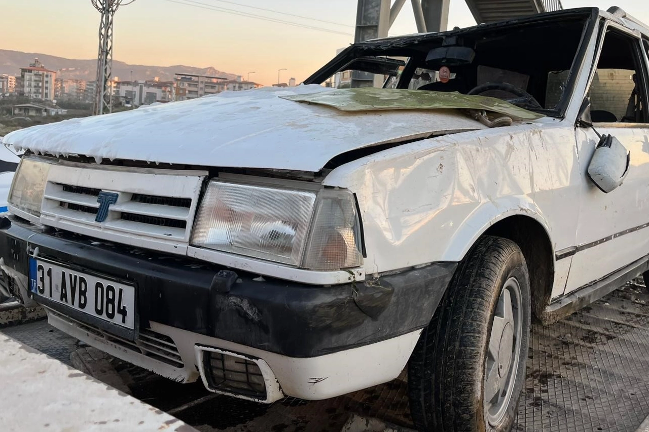 Kaza, Defne ilçesi Çekmece Mahallesi'nde yaşandı. Trafikte seyreden Tofaş marka 31 AVB 084 plakalı otomobil, üst geçidin merdivenine çarparak takla attı. Ters dönerek durabilen araçta sıkışan sürücü itfaiye ekiplerince kurtarıldı. Yaralı sürücü olay yerindeki ilk müdahalenin ardından hastanede tedavi altına alındı. Hurdaya dönen araç çekiciyle otoparka kaldırılırken polis kazayla ilgili inceleme başlattı.