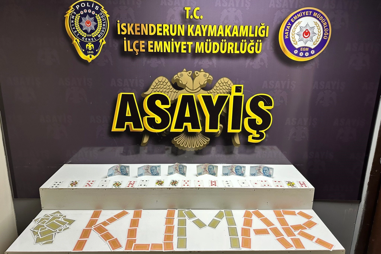 İskenderun İlçe Emniyet Müdürlüğü ekipleri kentte huzuru ve asayişi sağlamak amacıyla çalışmalarını aralıksız sürdürüyor. Polis ekiplerince kumar oynanması için yer ve imkan sağlama suçlarıyla mücadele çerçevesinde İskenderun Muradiye Mahallesi’nde faaliyet gösteren kıraathanede 4 şahsın kumar oynadığı suçüstü yapılarak tespit edildi. Masada bulunan 600 TL para ve 106 adet iskambil kağıdı muhafaza altına alındı.