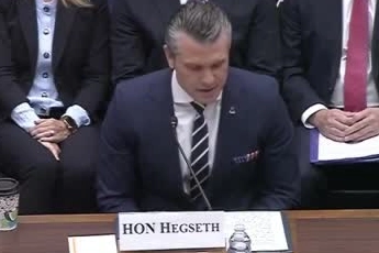 ABD Savunma Bakanı Pete Hegseth, ABD Başkanı Donald Trump yönetiminin savunma harcamalarını 1,5 trilyon dolara çıkarmayı öngören savunma bütçesi teklifini görüşmek amacıyla düzenlenecek oturuma katılmak üzere ABD Kongresi’ne geldi. Hegseth, Temsilciler Meclisi Silahlı Hizmetler Komitesi önünde vereceği ifade için salona girişi öncesinde, kendisine "savaş suçlusu" ifadesiyle seslenen bir grup tarafından protesto edildi. Protestoculardan biri "Hegseth tutuklansın" yazılı bir pankart taşırken, göstericilerden biri de "Niçin çocuklarla dolu bir okulu bombaladınız?" diye sordu. Hegseth, göstericileri görmezden gelerek ilerlerken bir protestocu da, "İsrail için daha kaç Amerikan askeri personelinin ölmesi gerek" diye sordu. HEGSETH, BAŞKANIN TALEP ETTİĞİ 1,5 TRİLYON DOLARIN "ANIN ACİLİYETİNİ YANSITTIĞINI" SÖYLEDİ