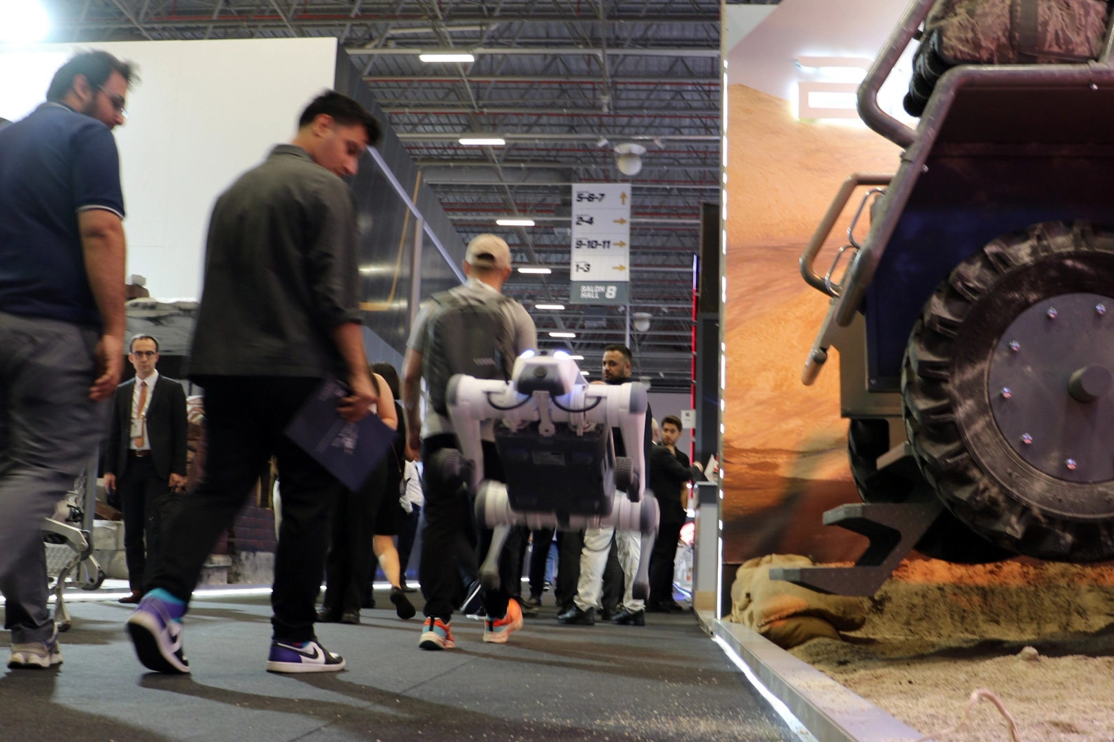 BİTES Savunma, Havacılık ve Uzay Teknolojileri, İstanbul Fuar Merkezi'nde bu yıl 17'incisi düzenlenen Uluslararası Savunma Sanayii Fuarı'nda (IDEF 2025) robot köpek olarak bilinen dört bacaklı insansız kara araçlarını sergiledi. Robot köpekler, modern savaş alanlarının ve operasyonel görevlerin karmaşıklığına yanıt olarak geliştirilirken, zorlu arazi şartlarına uyum sağlama kapasitesi ve gelişmiş sensör teknolojisiyle, hem askeri hem de sivil operasyonlarda öne çıkıyor. Kumanda ile kontrol edilen robot köpekler hem zıplıyor, hem takla atıyor hem de selam verirken, fuara gelenlerin de büyük ilgisini çekiyor.