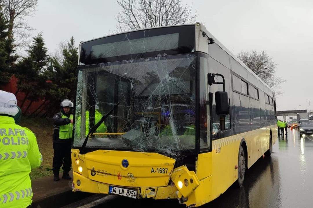 D-100 karayolu Bahçelievler mevkisinde Küçükçekmece istikameti yan yolda seyreden İETT otobüsü, sürücüsünün kontrolünden çıkarak kaldırımdaki aydınlatma direği ile reklam panosuna çarptı.