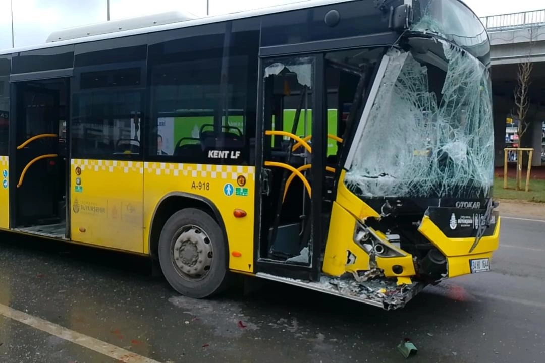 İETT otobüsü yolcu almak için durakta bekleyen minibüse çarptı. Çarpmanın etkisiyle minibüs önce kaldırıma çıktı ardından da devrildi.