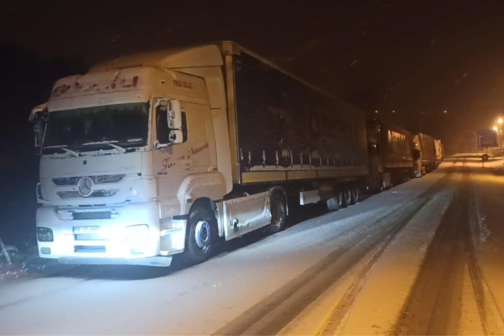 Araçların sürücüleri, kara yolunda geçidin açılması için bekliyor.
