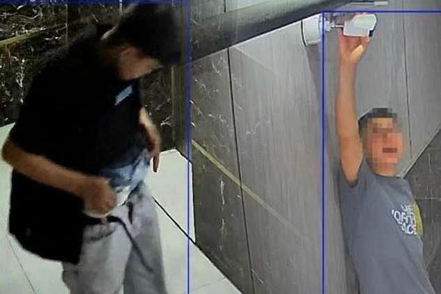 Olay, iş hanının güvenlik kamerasına yansıdı. Görüntülerde içeri giren iki kişiden biri asansörün köşesine tuvaletini yaparken, diğerinin ise kameranı açısını değiştirdiği yer alıyor.