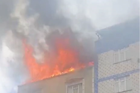 Yanan binadan yükselen alevler Arnavutköy'ün bir çok noktasından görülürken, ateş topuna dönen çatı havadan böyle görüntülendi.