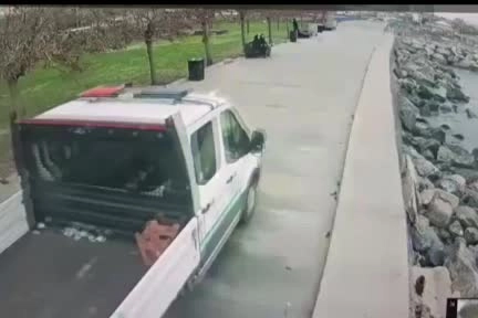 Zabıta aracının demir korkuluklara çarparak denize düştüğü anların güvenli kamera görüntüsü ortaya çıktı. Görüntülerde seyir halindeki zabıta aracının bir süre sonra manevra yaptığı ve sonrasında demir korkuluklara çarparak denize düştüğü görülüyor.