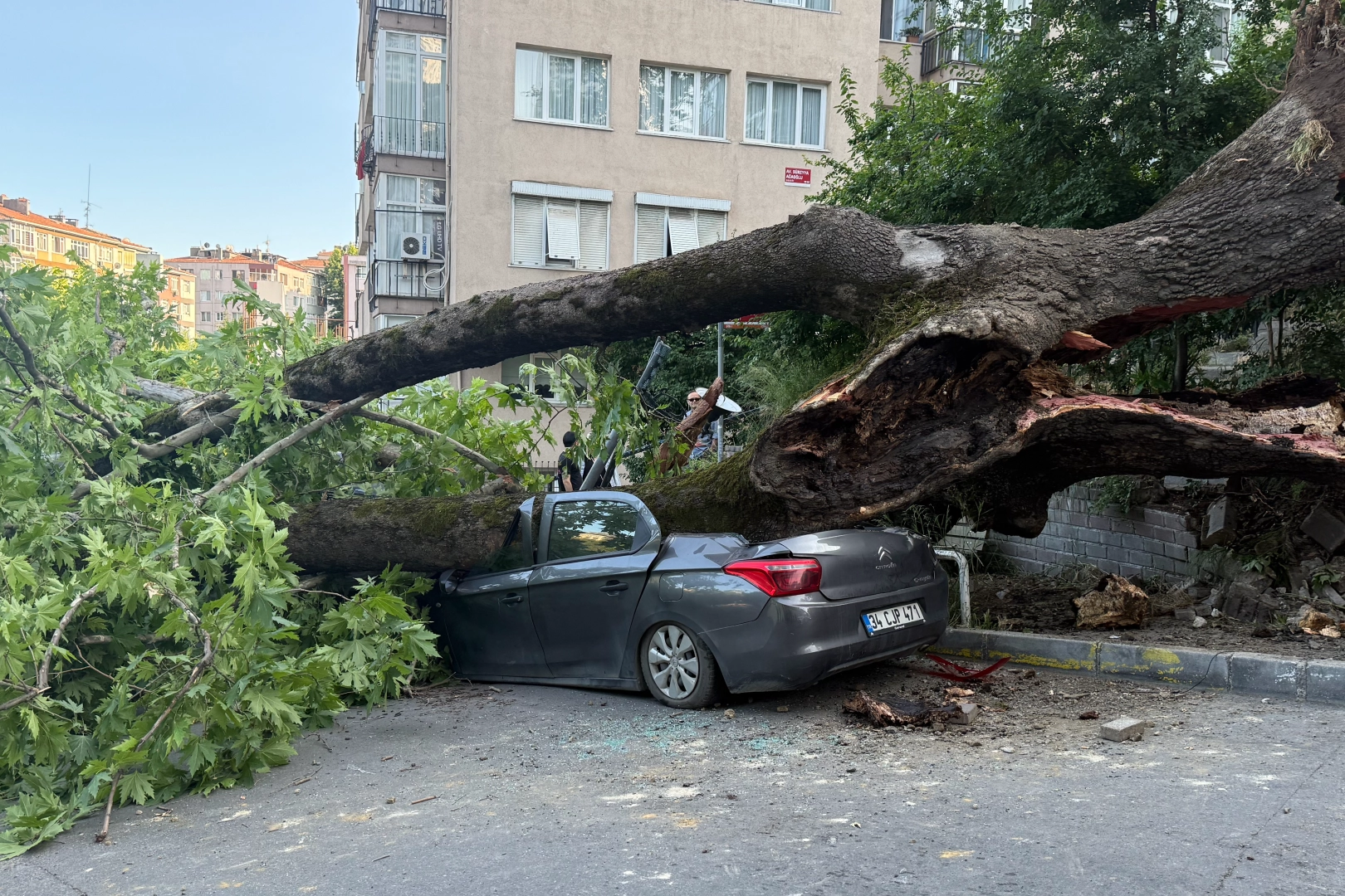 Aracı hasar gören Ömer Bakacak, "Aracım park halindeydi. Dün akşam bırakmıştık. Altı çürümüş ağacın, boşalmış. Ağacın tarihinin 150 yıllık olduğunu söylüyorlar. Zamanında bu binada da oturdum, epey eski bir ağaç. Ağacın altında gözüken 3 araç var" dedi.