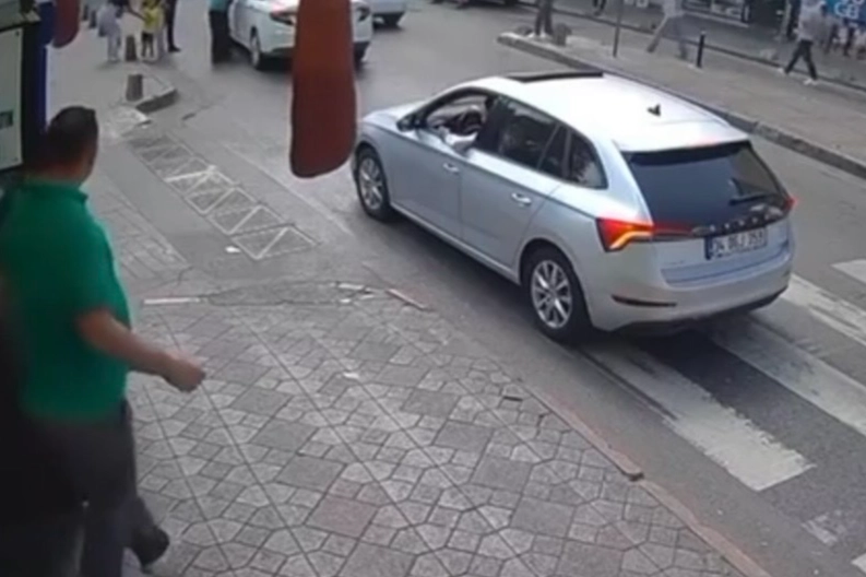 Kaza anı bir iş yerinin güvenlik kamerasına anbean yansıdı. Görüntülerde trafiğin yavaşlamasıyla birlikte dede ve torununun yolun karşısına geçmeye çalışması ve otomobilin yayalara çarpma anı yer aldı.