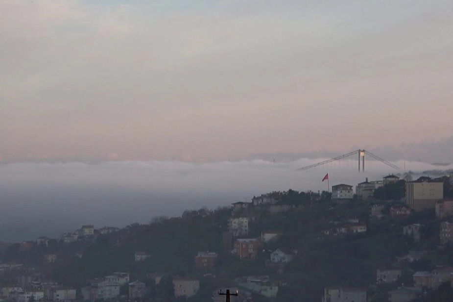 İstanbul’da sabah saatlerinden itibaren Boğaz çevresinde yoğun sis etkili olmaya başladı. Görüş mesafesinin azalmasıyla birlikte Fatih Sultan Mehmet Köprüsü tamamen sis tabakasının altında kaldı.