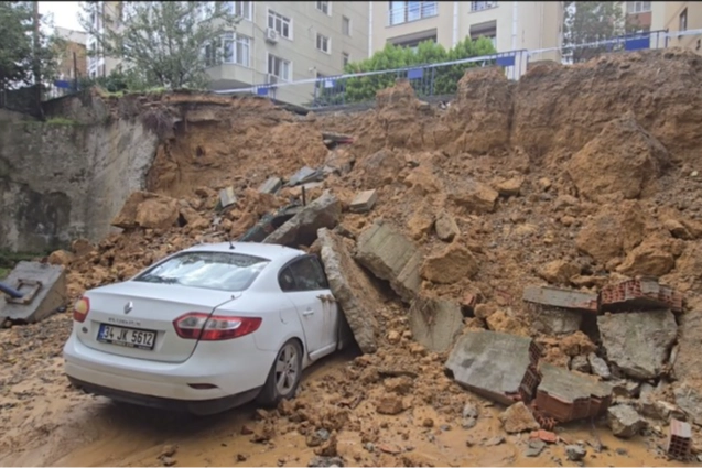 Olay, saat 02.45 sıralarında Feyzullah Mahallesi Köroğlu Beyi Sokak'ta meydana geldi. Edinilen bilgiye göre, sokakta bulunan 6 katlı bir binanın istinat duvarı, yağmurun etkisiyle çöktü. Duvarla birlikte kaldırım da park halindeki 3 otomobilin üzerine devrildi. İhbar üzerine olay yerine polis, itfaiye ve zabıta ekipleri sevk edildi.