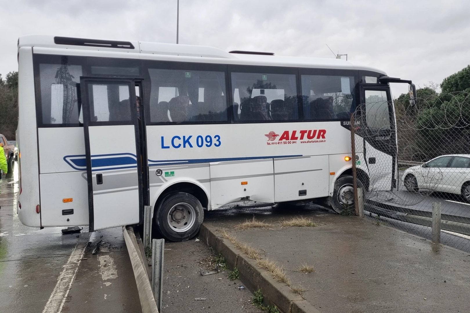 Kaza, saat 16.00 sıralarında Eyüpsultan ilçesine bağlı Göktürk'te meydana geldi. Edinilen bilgiye göre, Oktay G. idaresindeki Altur Turizm'e ait 34 LCK 093 plakalı OTOKAR marka servis aracı, sürücünün yağmur nedeniyle kayganlaşan yolda direksiyon hakimiyetini kaybetmesi sonucu bariyerlere çarparak yan döndü. İhbar üzerine bölgeye polis, sağlık ve itfaiye ekipleri sevk edildi. Yan dönen otobüs nedeniyle her iki istikamette tek şerit trafiğe kapatılırken, uzun araç kuyrukları oluştu. Kaza sırasında araçta işçilerin olmaması ile facianın eşiğinden dönüldü. Servis şoförü Oktay G. kazadan yara almadan kurtulurken, servis aracında hasar oluştu.