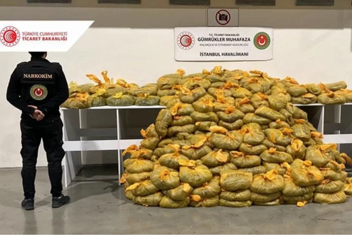 Bakanlığın sosyal medya hesabından yapılan açıklamada, "Gümrük Muhafaza ekiplerimiz, İstanbul Havalimanı'nda gerçekleştirdiği başarılı operasyon sonucunda 568 kilogram uyuşturucu madde yakaladı.