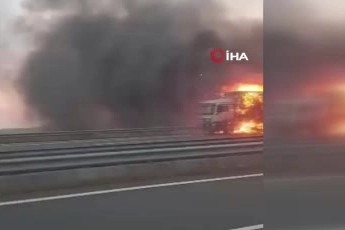 Olay, akşam saatlerinde Kuzey Marmara Otoyolu Çatalca mevkiinde meydana geldi. Edinilen bilgiye göre, seyir halindeki bir tırda yangın çıktı. Dumanları fark eden sürücü, aracı yol kenarına çekerek park etti. Sürücünün müdahalesine rağmen yangın kısa sürede tüm tırı sardı. Alevlere teslim olan araç, olay yerine sevk edilen itfaiye ekiplerince söndürüldü. Tır kullanılamaz hale gelirken, yangın anı cep telefonu kameralarına yansıdı.