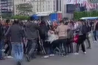 Kavgayı gören meydanda görevli polis ekipleri gruplara müdahalede bulundu. Kısa süreli yaşanan kavga anı ise kameralara yansıdı.