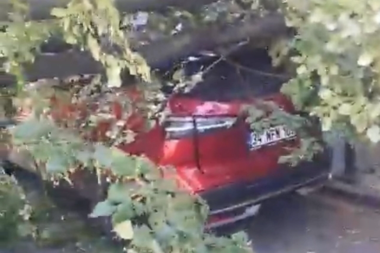 Araç sahibinin ağacın altında kalan otomobilini iki ay önce aldığı öğrenildi. Olayla ilgili çalışma başlatıldı.