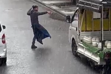 İstanbul Arnavutköy’de kar yağışı etkili oldu. Yağan kara aldırış etmeyen bir seyyar satıcı da aracından müzik açarak sokak ortasında oynadı.