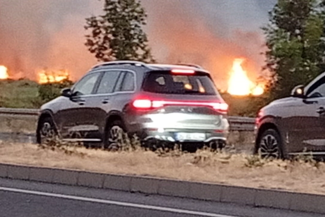 Edinilen bilgiye göre, akşam saatlerinde Hacı Ömerli Mahallesi ile Çaltılıdere Mahallesi arasında bulunan Mersinlik mevkisinde otluk alanda çıkan yangın, rüzgarın etkisiyle kısa sürede büyüdü. Alevler Çanakkale-İzmir Devlet Karayolu'na kadar ulaştı. Yoğun duman ve alevlerin yol kenarına yaklaşması, sürücülere zor anlar yaşattı. Görüş mesafesinin düşmesi nedeniyle araçlar yolda ilerlemekte güçlük çekti. Bir araç içerisinde yaşanan panik ise kameraya yansıdı.