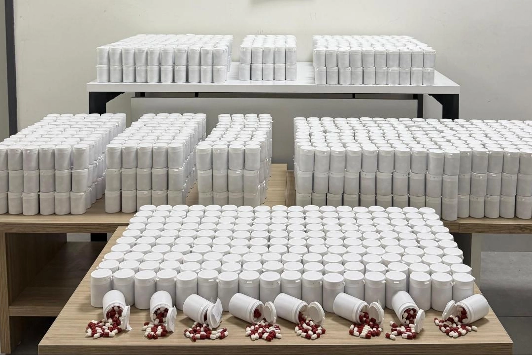 Evdeki aramalarda 102 bin 596 uyuşturucu hap, uyuşturucuların paketlenmesinde kullanılan 1973 kutu ve 1 ruhsatsız pompalı tüfek ele geçirildi.
