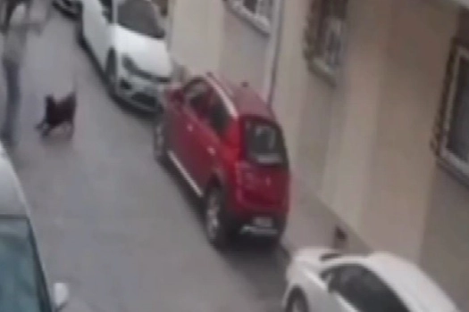 Olay, bugün Balçova'da meydana geldi. Sokakta yürüyen iki kişiden biri, belinden kemerini çıkardı ve yanına yaklaşan hayvana vurdu. O anlar sokaktaki güvenlik kamerasına da yansıdı. Sosyal medyada da yayınlanan görüntüler büyük tepki çekti.