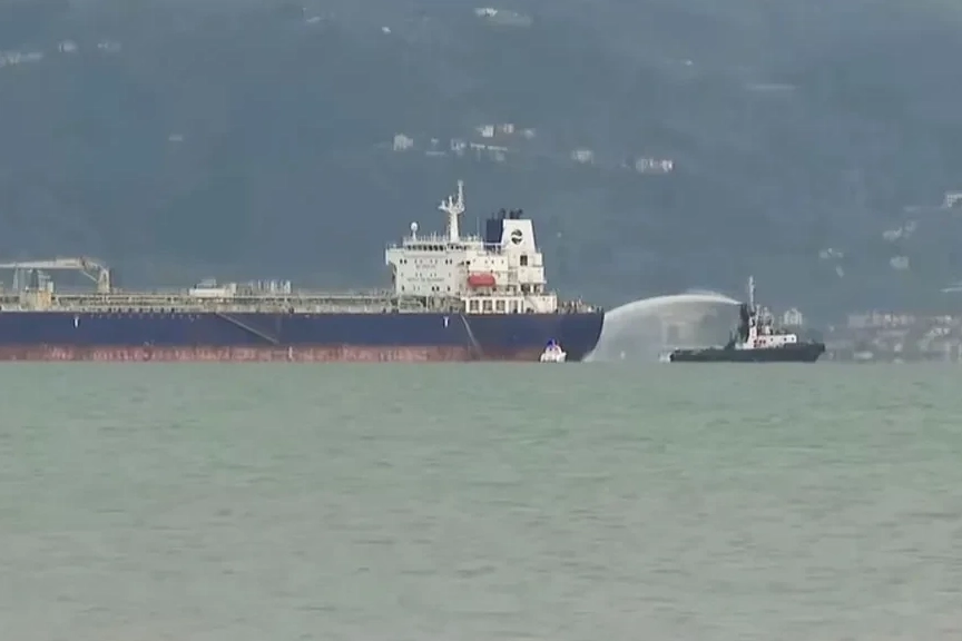 İzmit Körfezi'nde demirlemiş tankerin makine dairesinde yangın çıktı. Bölgeye sevk edilen ekipler yangına müdahale ediyor.