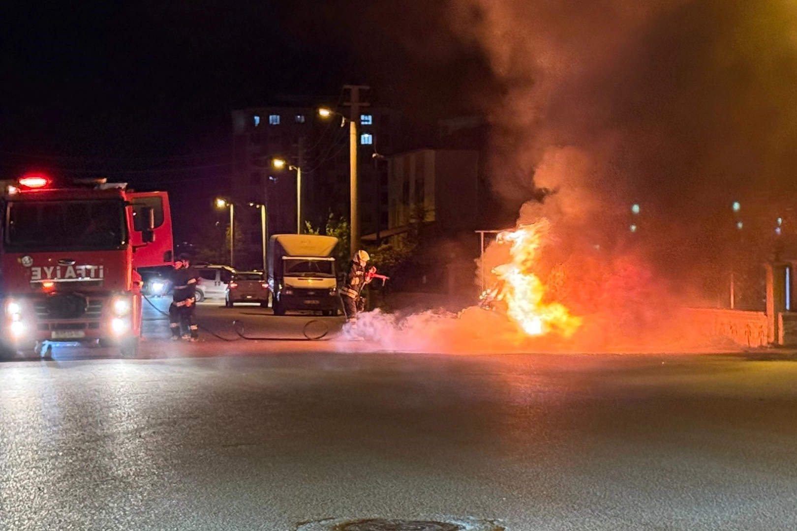 Yanan otomobil kullanılamaz hale geldi. Otomobilin yanma anı bir vatandaşın cep telefonu kamerasına yansıdı.