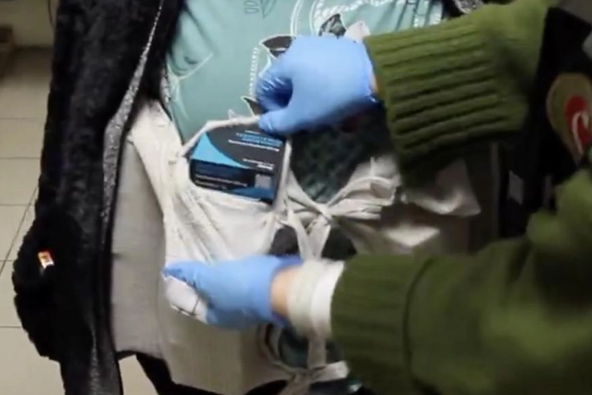 Kapısı'ndan yurda giriş yapmak isteyen bir kadın yolcuyu şüphe üzerine aradı.