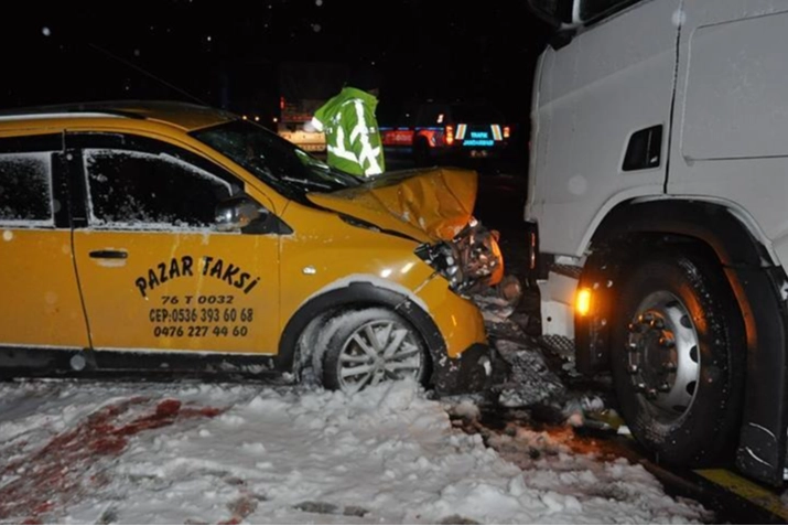 Kars'ta sabah başlayan kar yağışı ve tipi akşam saatlerinde buzlanmaya dönüşünce sürücüler trafikte zor anlar yaşadı. Kars- Kağızman karayolunun 45'inci kilometresinde bulunan 2 bin 200 rakımlı Paslı geçidinde Veysel Taş yönetimindeki 25 ABG 902 plakalı TIR ile Mehmet Salman yönetimindeki 76 T 0032 plakalı ticari taksi çarpıştı. İhbar üzerine bölgeye 112 acil sağlık ve jandarma ekipleri sevk edildi. Trafiğin tek şeride düşürüldüğü bölgede yaralanan taksi sürücüsü ile araçta bulunan Medet Kızılay, Mecit Kızılay ve Makude Kızılay ambulansla Kağızman Devlet Hastanesine kaldırıldı. Burada yapılan tüm müdahalelere rağmen Medet Kızılay (58) hayatını kaybetti. Kızılay’ın cenazesi otopsi için morga kaldırılırken, kazayla ilgili soruşturma başlatıldı.