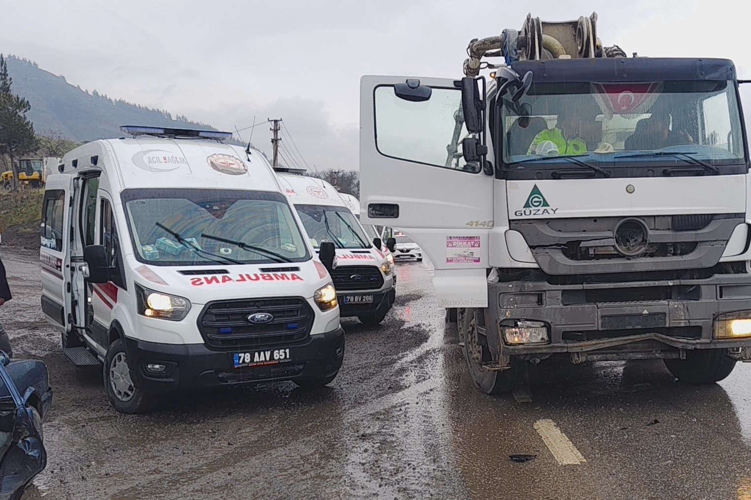 Kaza Karabük-Eskipazar kara yolu Karabük Belediyesi Fen İşleri Müdürlüğü mevkiinde meydana geldi. M.A. yönetimindeki 78 SP 901 plakalı beton mikseri, T.B. idaresindeki 78 AAT 534 plakalı otomobille çarpıştı. Kazada, otomobil sürücüsü T.B. ile aynı araçta yolcu olarak bulunan V.B., İ.A., Y.G. ve O.B. (10) yaralandı. Yaralılar, sağlık ekipleri tarafından yapılan ilk müdahalenin ardından Karabük Eğitim ve Araştırma Hastanesi'ne kaldırıldı. Yaralıların hayati tehlikelerinin bulunmadığı öğrenildi.