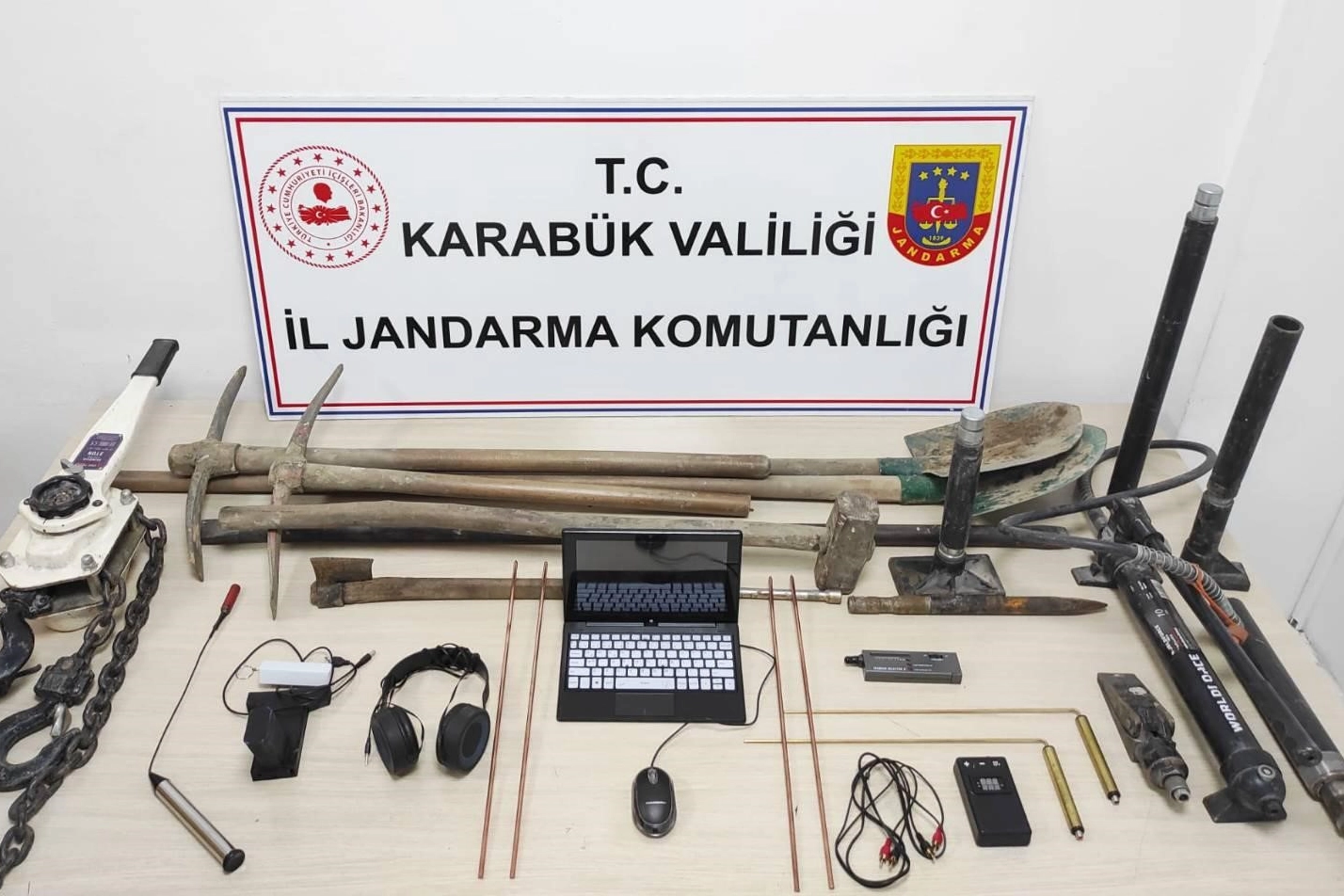 Edinilen bilgiye göre, İl Jandarma Komutanlığı ekipleri tarafından şehir merkezinde yapılan operasyonda izinsiz kazı yapan 3 şahıs, çeşitli ekipmanlarla birlikte suçüstü yakalandı. Şahısların yanında birer adet hidrolik doğrultma seti, calaska, dizüstü bilgisayar, kulaklık, kıymetli taş ölçüm cihazı, 1 çift define arama çubuğu, 2 adet alan tarama cihazı, 4 adet bakır çubuk ile 9 adet muhtelif kazı malzemesi ele geçirildi.Şehir merkezinde icra edilen üç ayrı faaliyette ise 8 şahsın üzerinde, eşyalarında ve ikametinde arama yapıldı. Yapılan aramalarda 158,6 gram sentetik kannabinoid, 1 gram metamfetamin, 1 adet içime hazır bonzai maddesi, 5 adet uyuşturucu madde kullanma aparatı, uyuşturucu madde paketlemede kullanılan 1 adet makas ile 63 adet boş ıslak mendil jelatini ele geçirildi.