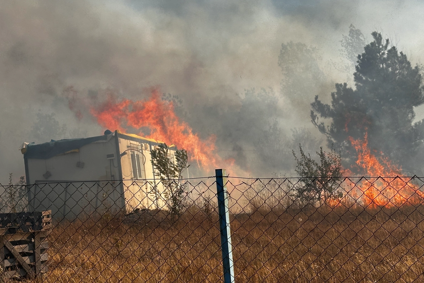 Edinilen bilgiye göre, merkeze bağlı Kahyalar köyü Kabaoğlu Mahallesi'nde öğleden sonra çıkan yangında alevler rüzgarın etkisiyle büyüdü. Kısa sürede yayılan alevler nedeniyle Kahyalar, Saitler ve Kadıköy köyleri ile bazı mahalleler boşaltıldı. Çok sayıda yangın söndürme helikopteri, arazöz ile itfaiye ekibinin havadan ve karadan müdahale ettiği alevler evlere sıçradı. Kabaoğlu Mahallesi'nde 3 ev ve 2 samanlık alevlere teslim oldu.