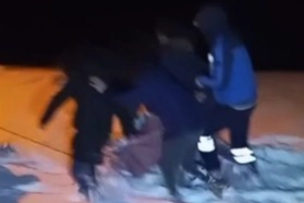 Kars’ın Arpaçay ilçesine bağlı Göldalı köyünde yaşayan 85 yaşındaki Naringül Gökbulak gece saatlerinde rahatsızlandı. Yoğun kar yağışı ve tipiden köy yolunun kapanması nedeniyle yaşlı kadını hastaneye götüremeyen aile fertleri, durumu 112 Acil Çağrı Merkezi’ne bildirdi. İhbar üzerine köye yönlendirilen ambulanstaki sağlık ekipleri, yolun kapalı olması nedeniyle köy merkezine ulaşamadı. Bunun üzerine hasta yakınları kendi imkanlarıyla çözüm bulmaya çalıştı. Battaniyeye sarılan Naringül Gökbulak, plastik bir leğene yerleştirildi. Yaklaşık 2 kilometre boyunca karla kaplı yolda ilerleyen vatandaşlar, zaman zaman kara saplanarak güçlükle yürüyebildi. Uzun uğraşlar sonucu ambulansa ulaştırılan Gökbulak, sağlık ekipleri tarafından ilk müdahalesi yapıldıktan sonra Arpaçay Devlet Hastanesi’ne kaldırıldı. Yaşlı kadının genel sağlık durumunun iyi olduğu öğrenildi. Yaşlı kadının zorlu şartlarda ambulansa ulaştırıldığı anlar ise bir vatandaş tarafından cep telefonu kamerasıyla saniye saniye kaydedildi.