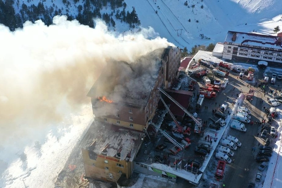 Kent merkezine 38 kilometre mesafedeki 2 bin 200 rakımlı Köroğlu Dağları'nın zirvesindeki 5 otelden 1'i olan Grand Kartal Otel'de 21 Ocak'ta gece saatlerinde yangın çıktı.