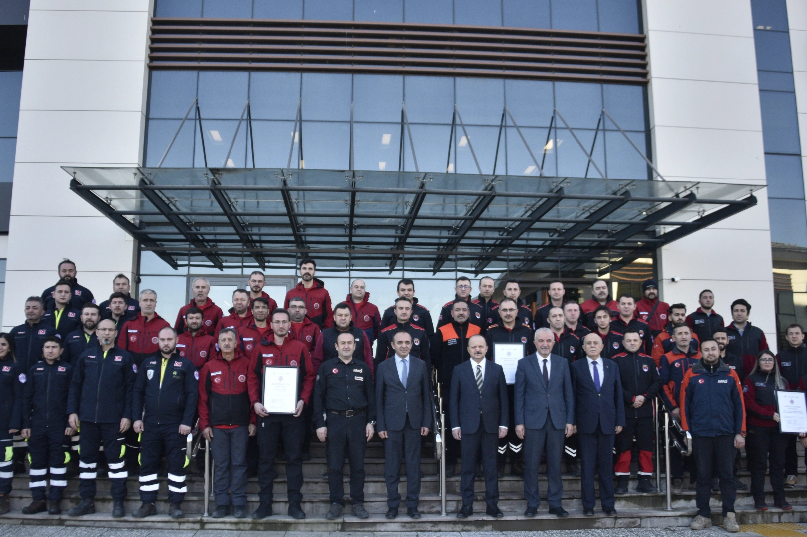 Konuşmaların ardından eğitim ve çalışmaları başarı ile tamamlayan 5 arama ve kurtarma ekibinin yaptıkları çalışmalar hakkında sunumlar yaptı.