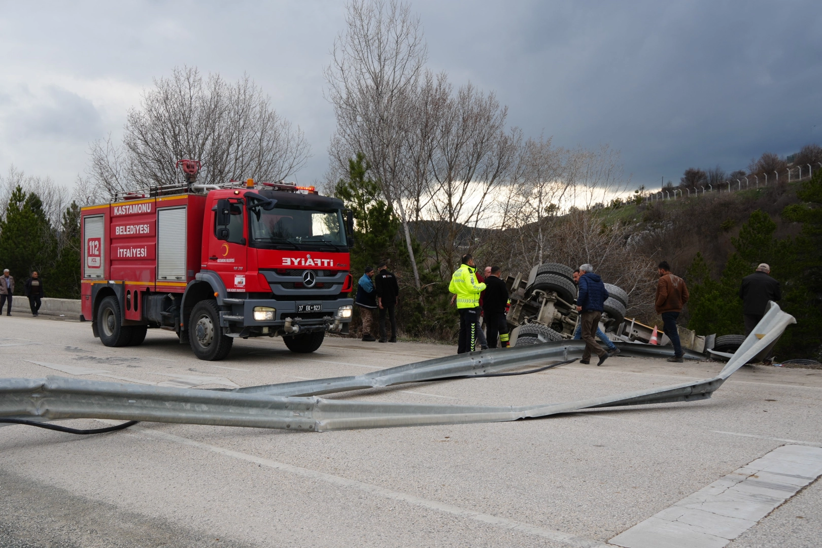 Kaza sebebiyle kırılan bariyerler, Kastamonu-İstanbul karayolunu ulaşıma kapattı. Karayolları 15. Bölge Müdürlüğüne bağlı ekiplerinin çalışmasıyla yol ulaşıma açıldı. Hafriyat kamyonu ise vinç yardımıyla bulunduğu yerden kaldırıldı.