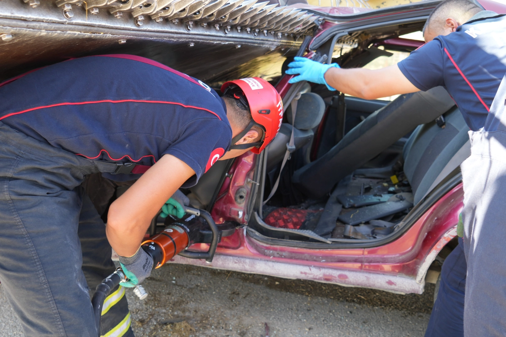 Yaklaşık 30 metre fren izinin tespit edildiği kaza yerindeki otomobil ise, çekici marifetiyle bulunduğu yerden alınarak yediemin otoparkına çekildi. Biçerdöverin sürücüsü Erkan E. de jandarma ekiplerince ifadesi alınmak üzere karakola götürüldü.