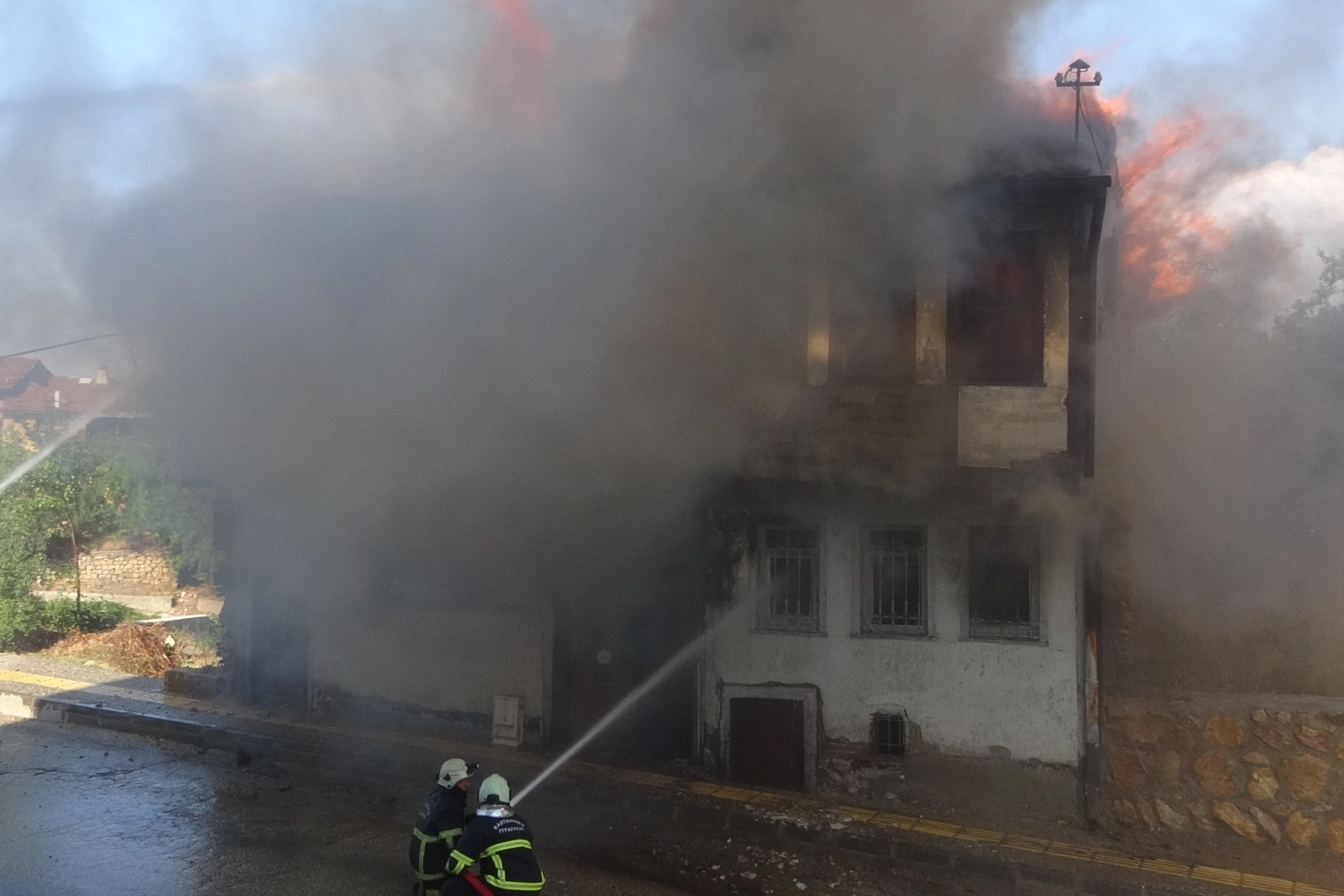 Yangın, İsmail Bey Mahallesi'nde yer alan ve 1454 yılında Candaroğulları Beyliği’nin son hükümdarı İsmail Bey tarafından yaptırılan İsmail Bey Külliyesi'nin hemen bitişiğindeki 2 katlı metruk binada çıktı. Edinilen bilgiye göre, sebebi henüz belirlenemeyen yangında alevler kısa sürede büyüyerek tüm binayı kapladı. Çevredeki vatandaşların ihbarı sonrası olay yerine itfaiye ekipleri sevk edildi. İtfaiye ekiplerinin yoğun mücadelesi sonucunda metruk binada çıkan yangın, İsmail Bey Külliyesi'ne sıçramadan kontrol altına alındı. Söndürme çalışmalarının devam ettiği 2 katlı metruk binanın duvarı ve çatısı ise çöktü.