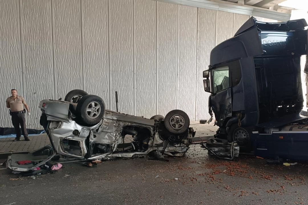 Kazada otomobilde bulunan biri çocuk 3 kişi olay yerinde hayatını kaybetti, tır sürücüsü ile otomobildeki 4 kişi de yaralandı.
