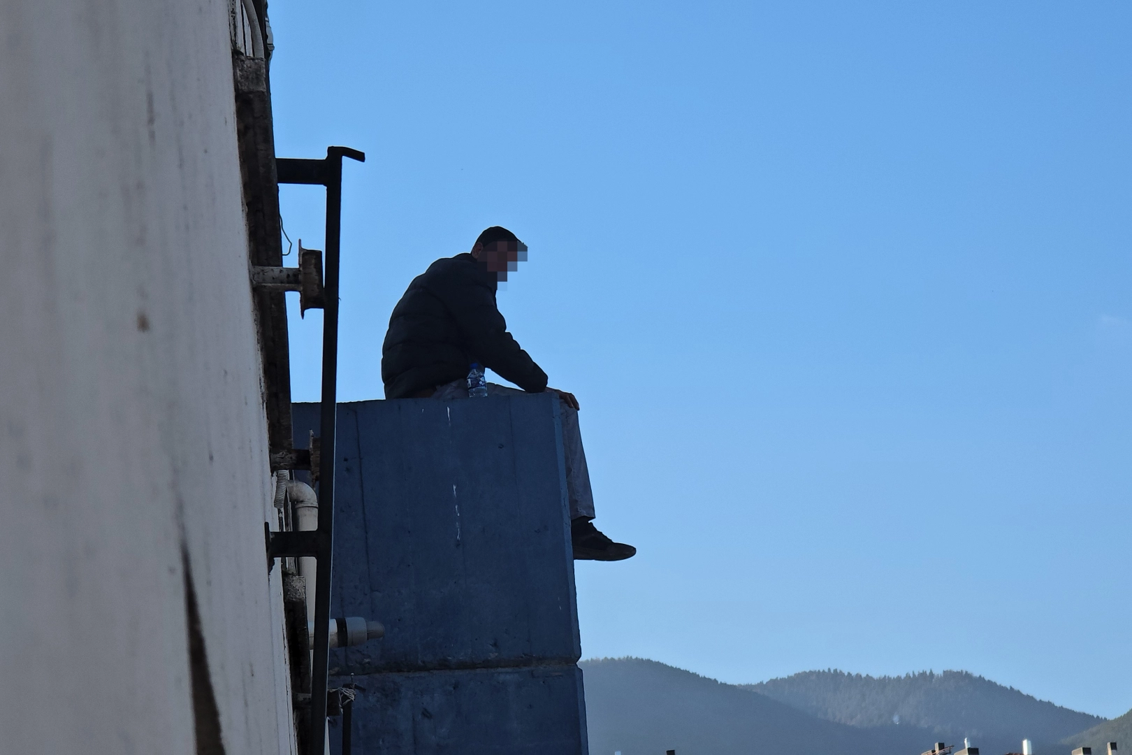 Bunun üzerine Daloğlu, cadde üzerindeki 6 katlı bir binanın çatısına çıkarak kenarına oturdu.