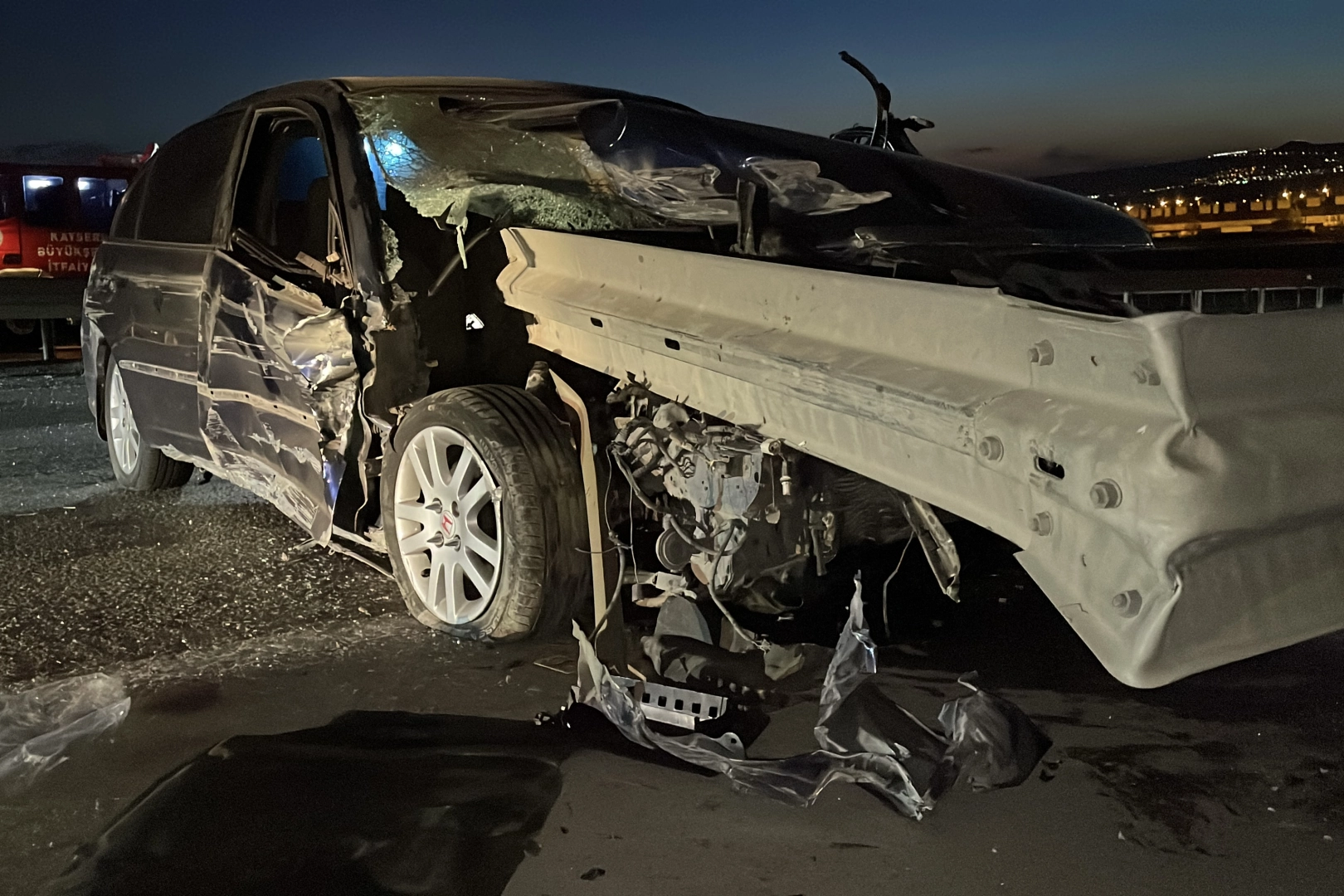 Çarpmanın etkisiyle çelik bariyer, otomobilin içine girdi. Vatandaşların ihbarı üzerine bölgeye, sağlık ve polis ekipleri sevk edildi.