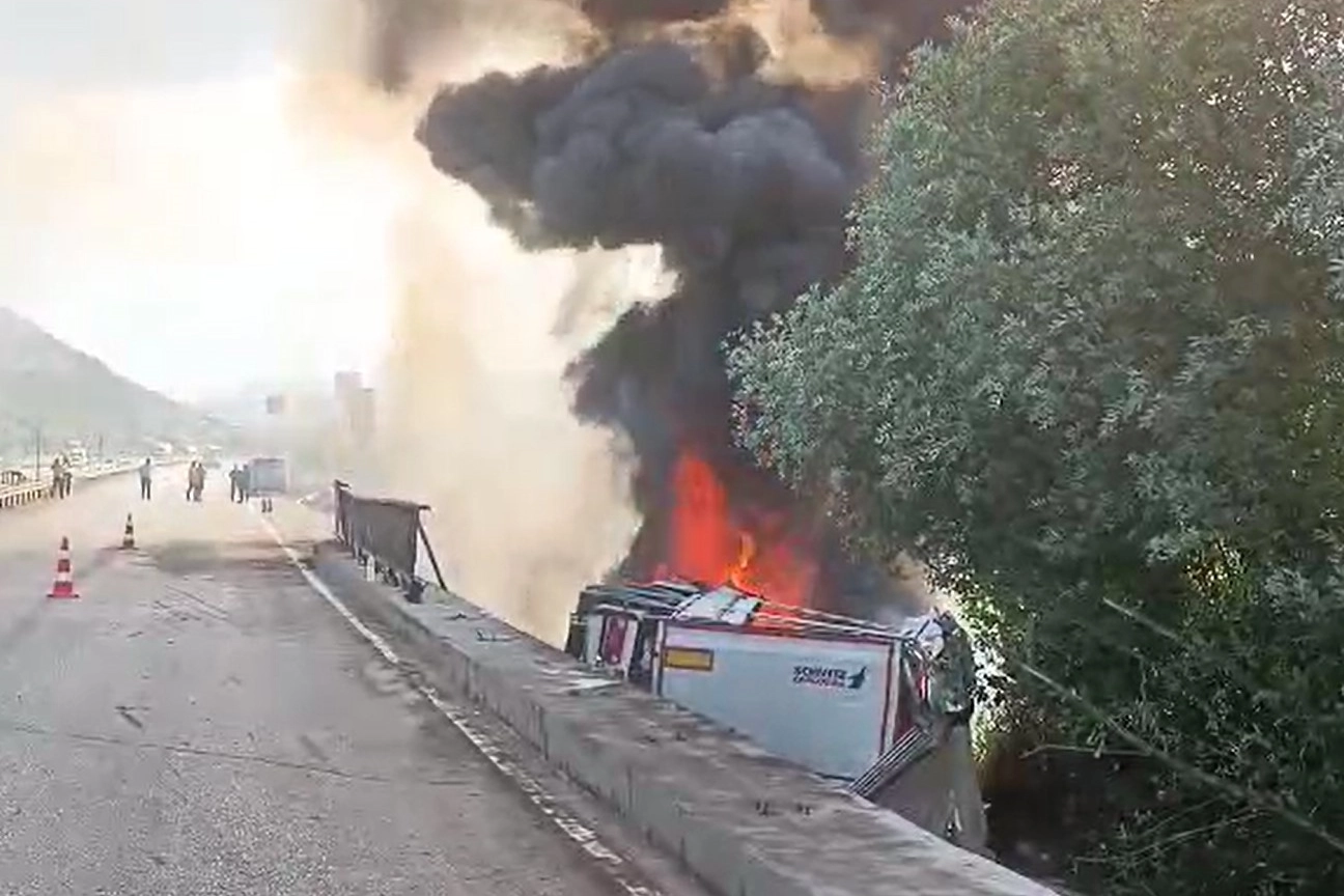 Kazadan yaklaşık 9 saat sonra, devrilen tır henüz bilinmeyen bir nedenle yanmaya başladı. İtfaiye ekiplerinin müdahalesiyle alevler kontrol altına alınarak söndürüldü. Yangın nedeniyle tırda büyük çapta hasar oluştu.
