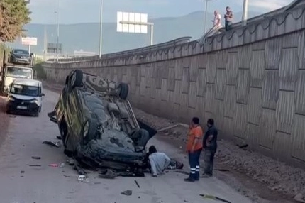 Edinilen bilgiye göre, İzmit ilçesi Kuzey Marmara Otoyolu’nda seyir halinde olan plakası ve sürücüsü öğrenilemeyen hafif ticari araç, bariyerleri aşarak 5 metre yükseklikten yan yola uçtu. Araç ters dönerken içinde bulunan 2 kişi yaralandı. İhbar üzerine olay yerine sağlık ve polis ekipleri sevk edildi. Kısa sürede olay yerine gelen sağlık ekipleri, 2 yaralıyı ambulansla hastaneye kaldırdı.