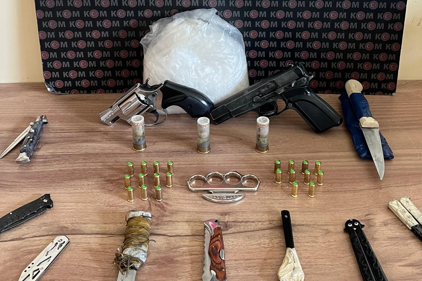 Kocaeli Emniyet Müdürlüğü’ne bağlı Kaçakçılık ve Organize Suçlarla Mücadele (KOM) Şube Müdürlüğü ekiplerince, silah ve mühimmat kaçakçılığı suçunun önlenmesi ve takibine yönelik yürütülen çalışmalar kapsamında operasyon düzenlendi. Bugün Gebze, Çayırova ve Darıca ilçelerinde belirlenen adreslere yapılan eş zamanlı operasyonlarda 2 adet muşta, 9 adet bıçak, 2 adet kurusıkı tabanca, 29 adet kurusıkı tabanca fişeği, 3 adet av tüfeği kartuşu ile 1 kilo 600 gram uyuşturucu madde ele geçirildi. Operasyonda yakalanan 7 şüpheli hakkında adli işlem başlatıldı.