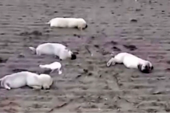 Arazi içerisinde yavru köpeklerden 4’ü ölü halde bulunurken, sağ kalan bir yavrunun ise ölen annesinin sütünü emmeye çalıştığı görüntüler yürekleri sızlattı.