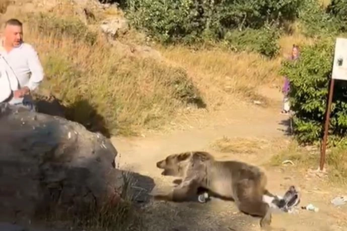 Bitlis'in Tatvan ilçesinde bulunan Nemrut Krater Gölü'nde geziye çıkan bir ailenin üzerine ayı saldırdı.