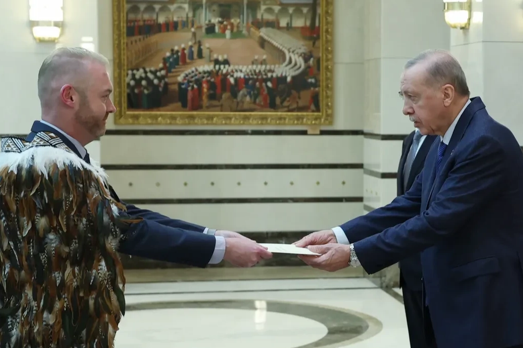 Cumhurbaşkanlığı Külliyesi'ndeki kabulde, Yeni Zelenda Büyükelçisi Greg David Lewis, Angola Büyükelçisi Joao Salvador Dos Santos Neto, ABD Büyükelçisi Thomas Joseph Barrack, Cumhurbaşkanı Erdoğan'a güven mektuplarını sundu.