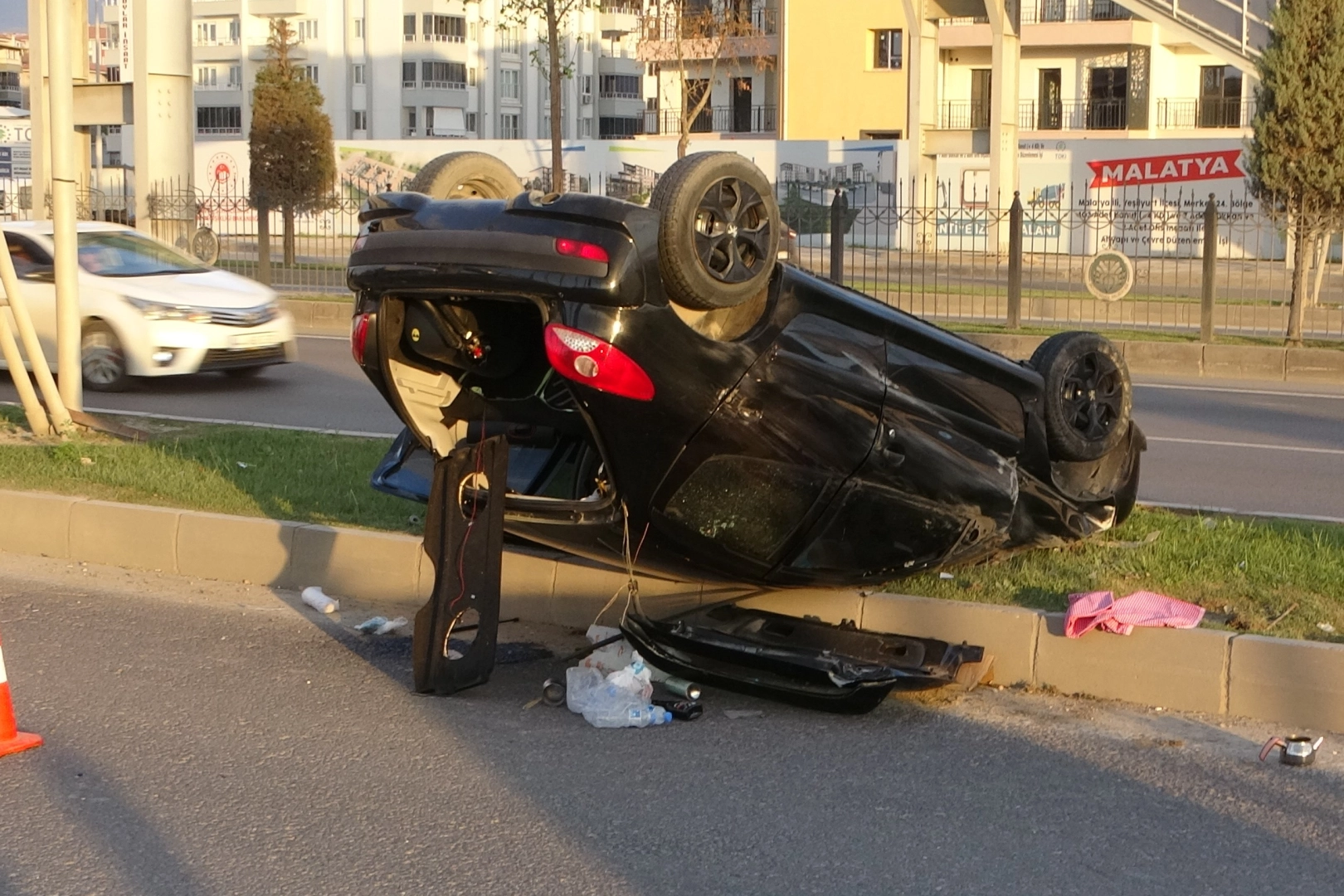 Kaza, Malatya- Ankara karayolu Polis Meslek Yüksek Okulu mevkiinde meydana geldi. Edinilen bilgilere göre, Ankara istikametine seyir halinde olan 07 S 4475 plakalı Peugeot marka otomobil, önünde seyreden araca çarpmamak için manevra yaptığı esnada kontrolünden çıkarak refüje çarpıp ters döndü. Kazada sürücü hafif şekilde yaralandı.